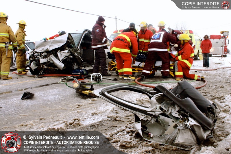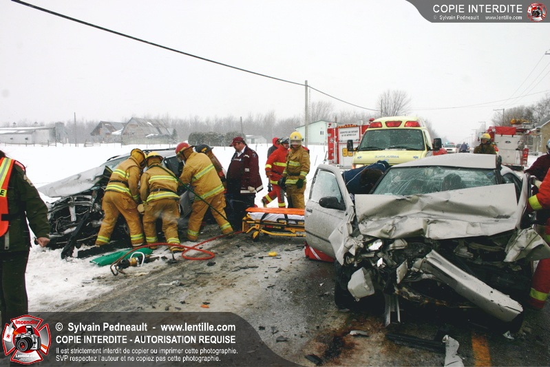 Suite à une perte de contrôle sur la chaussée glissante, un véhicule en percute un autre sur le rang Charlotte à St-Liboire. Deux victimes succombent à leurs blessures.