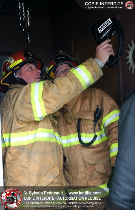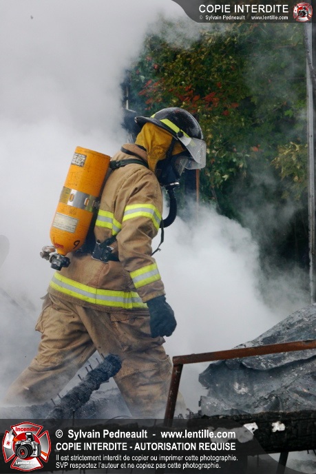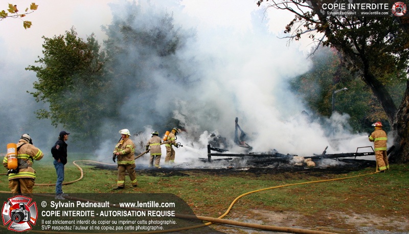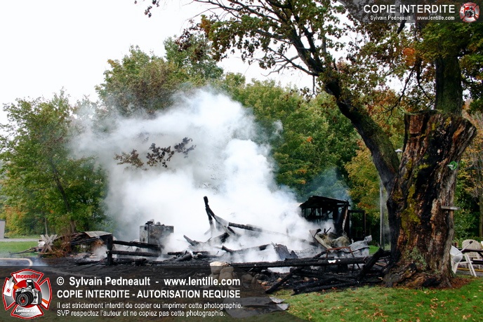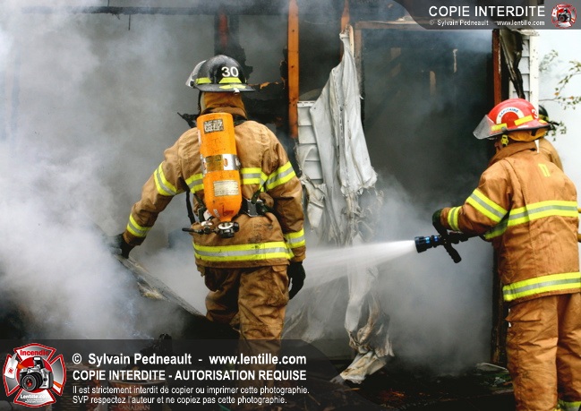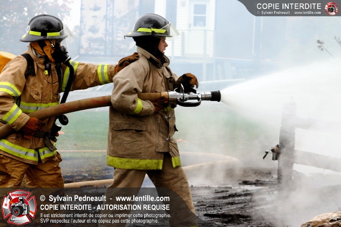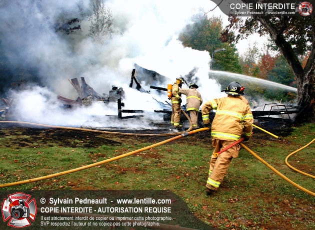 L'incendie était tout de même d'une bonne dimension puisque la colonne de fumée se voyait à plusieurs kilomètres de distance et la maison adjacente a été légèrement endommagée par la chaleur.