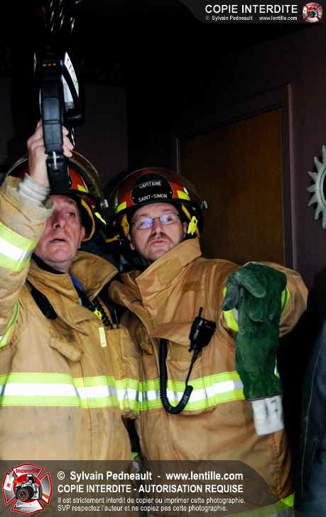 Le SSI de St-Simon, assisté d'un camion-citerne de St-Liboire, a procédé à l'extinction.