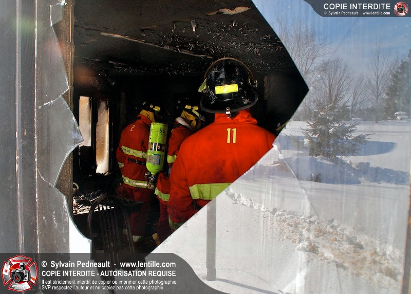 Les pompiers de St-Liboire sont intervenus sur la rue St-Patrice pour un feu de résidence. À leur arrivée, le bâtiment était rempli de fumée et l'incendie commençait à manquer d'oxygène. Ils ont rapidement procédé à la ventilation et à l'extinction de l'incendie. L'incendie aurait été découvert par un enfant qui revenait à la maison pour dîner. Sa présence d'esprit de refermer la porte de la maison après avoir découvert l'incendie a très probablement contribué à limiter la progression de l'incendie. Merci à la propriétaire des lieux pour permettre la publication des photographies prises à l'intérieur!